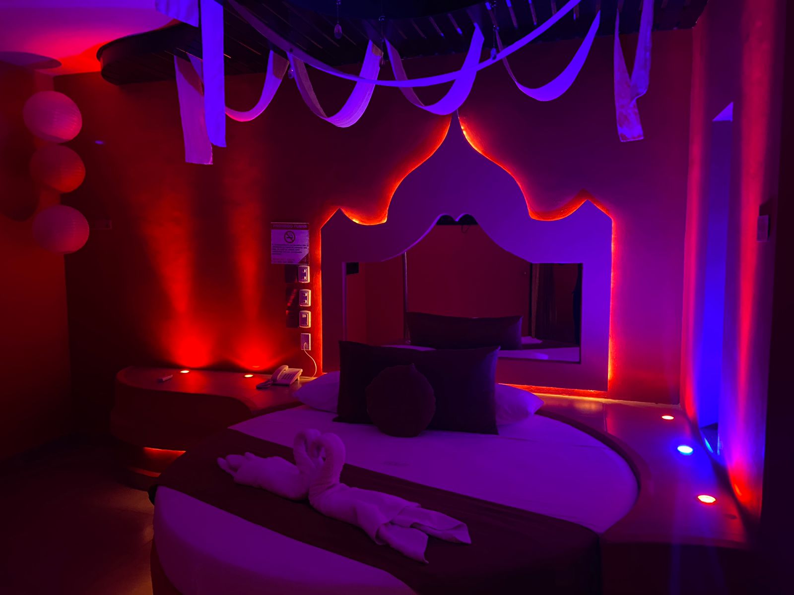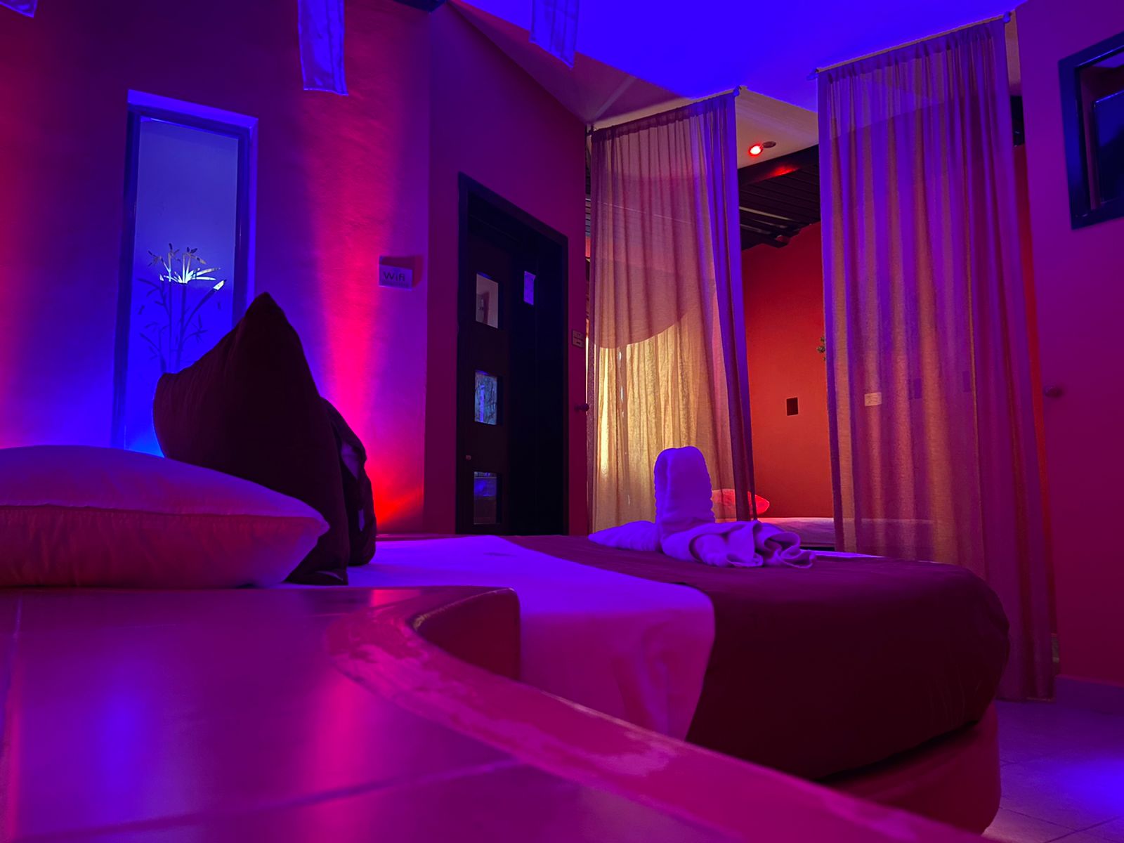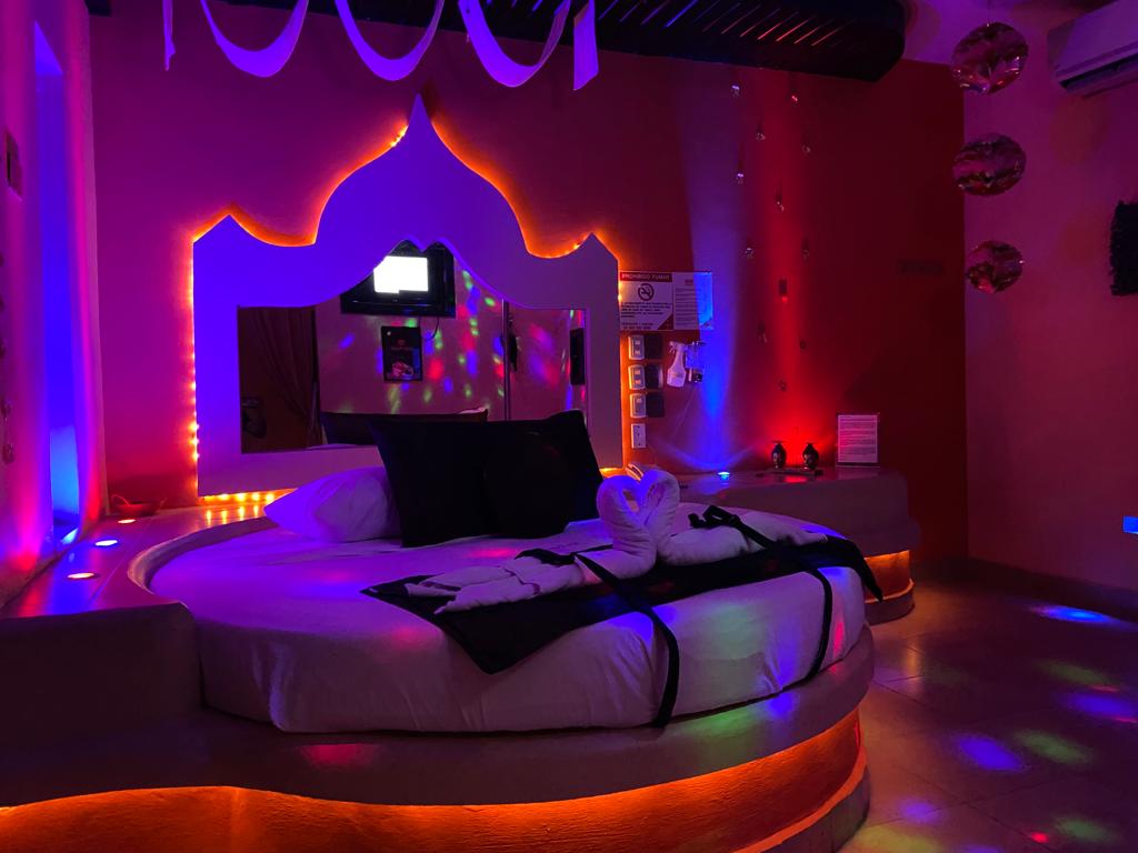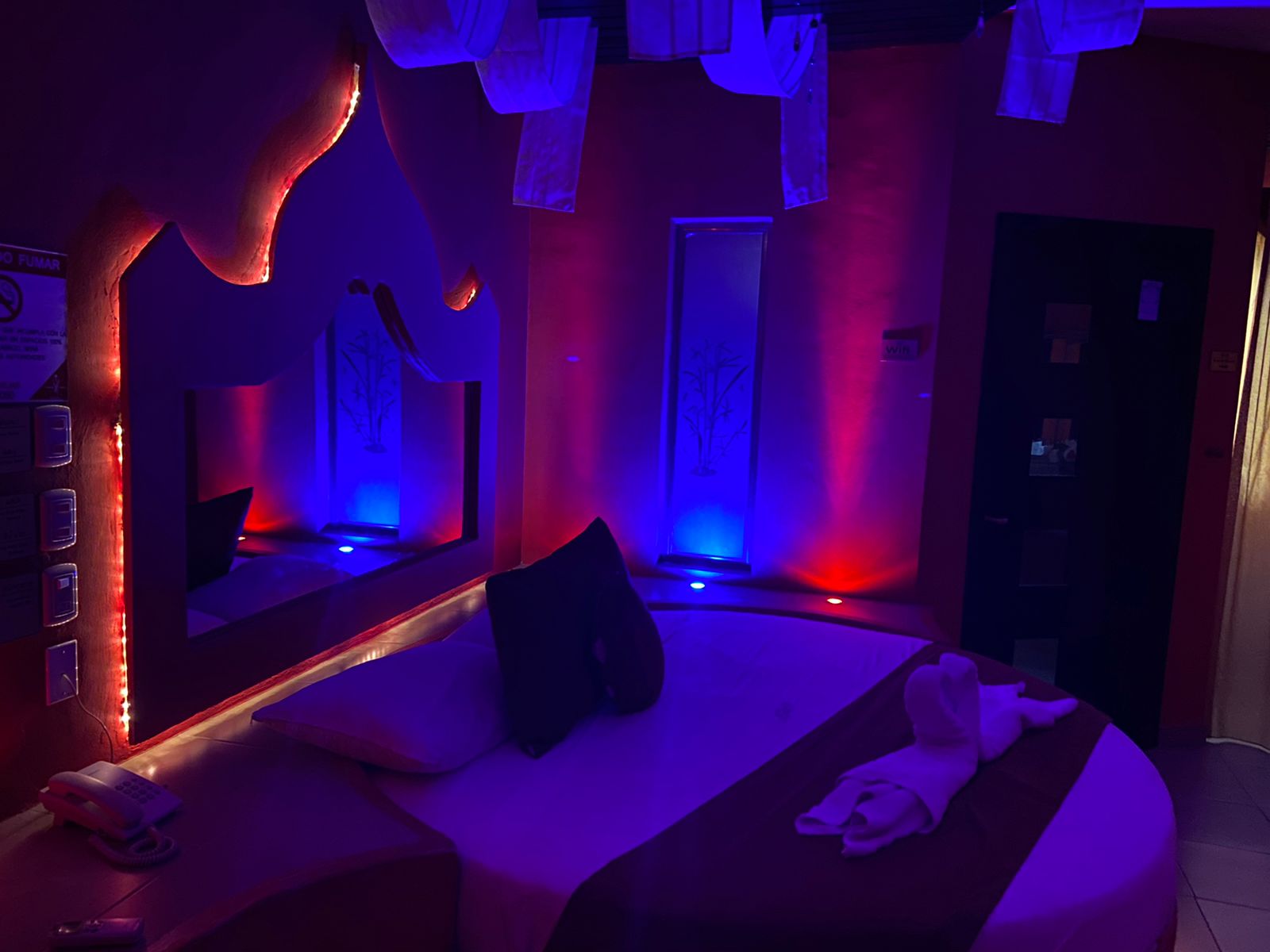 Todas las habitaciones tienen camas redondas, espejos estratégicamente colocados para su ambientación, área para baile exótico, área de masaje, nichos con velas las cuales le dan un ambiente romántico y acogedor, decoraciones e inciensos ,lámparas led que bañan cada habitación de luz roja, azul o de tíboli para que puedas crear el ambiente acogedor que más invite a tus sentidos.