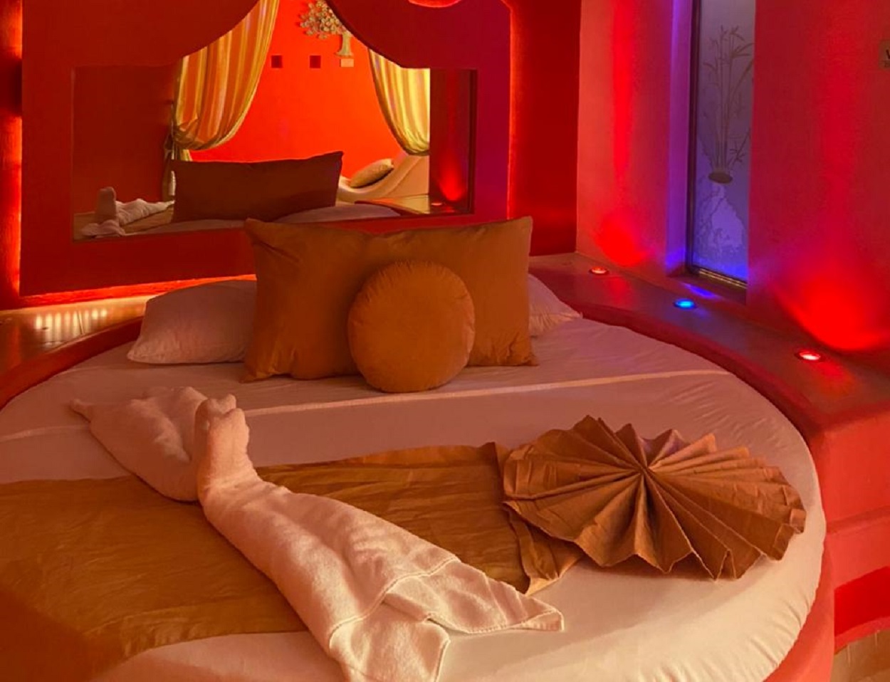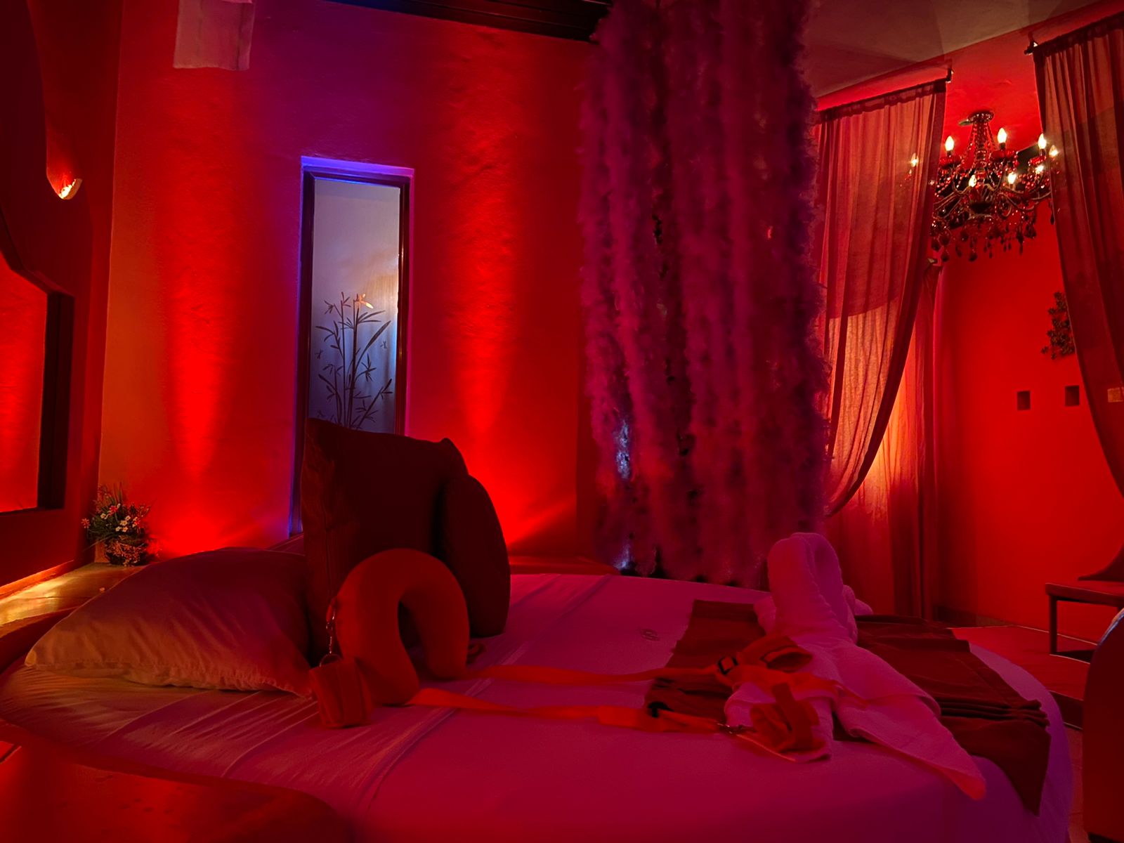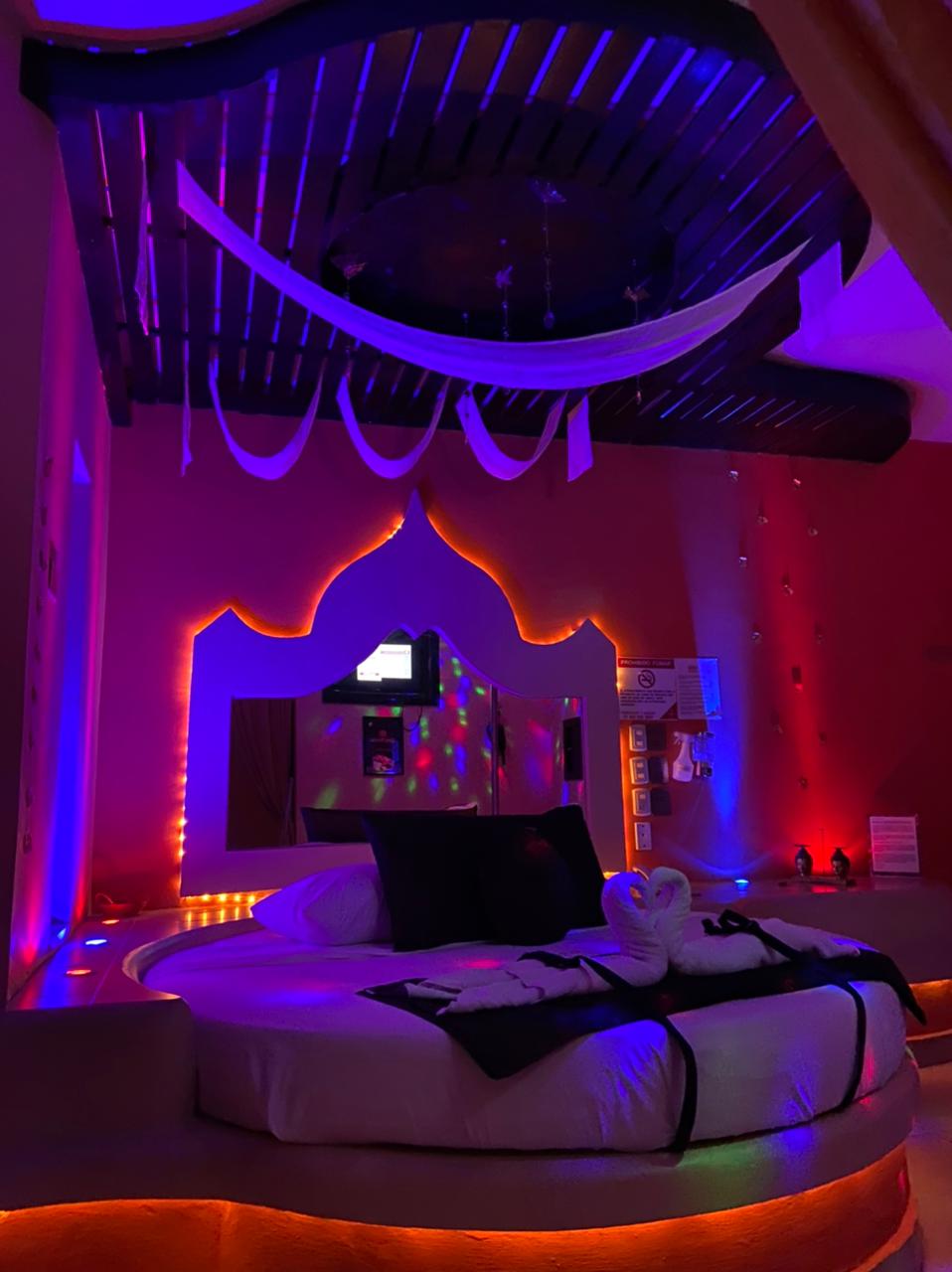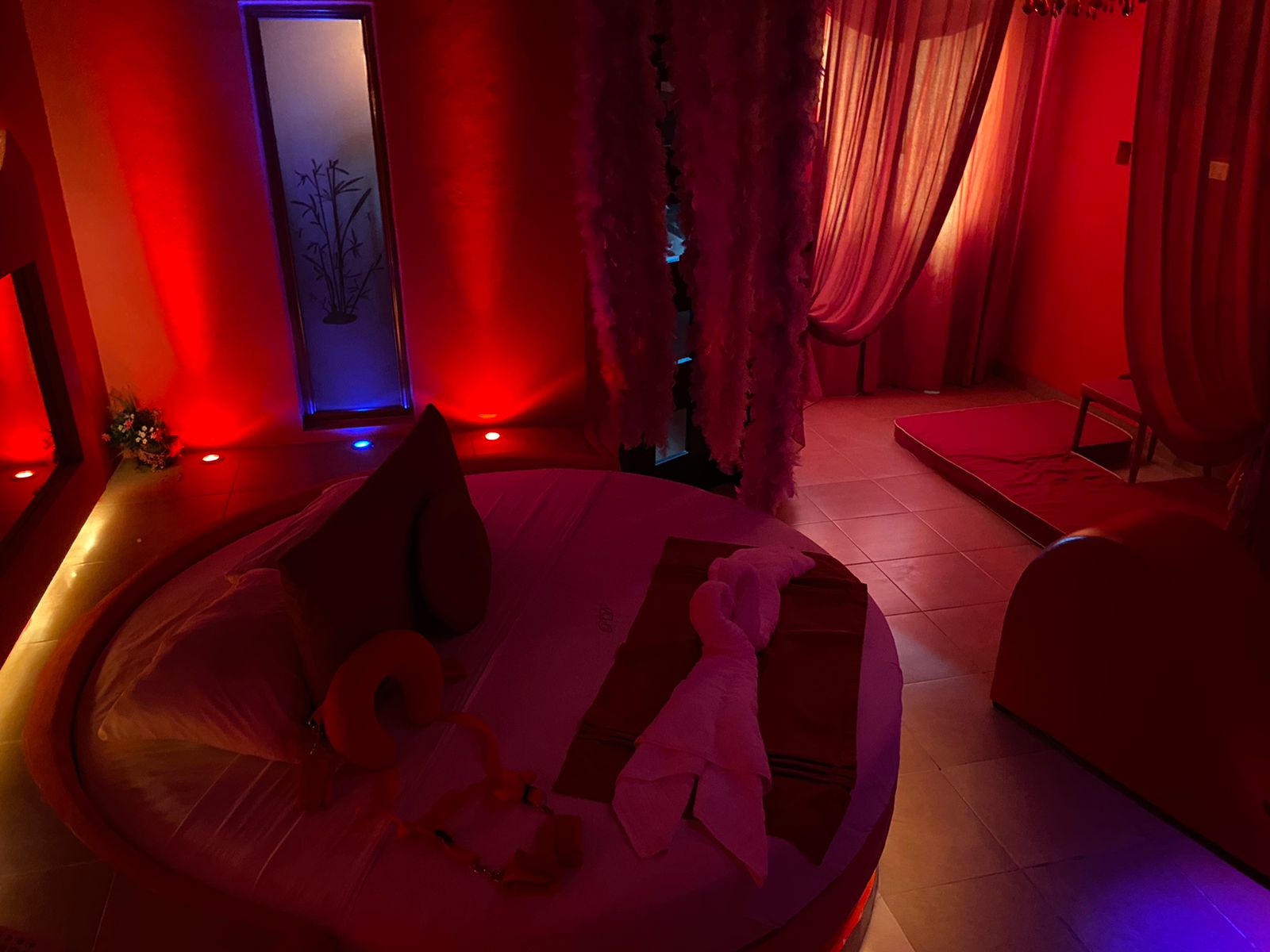 Todas las habitaciones tienen camas redondas, espejos estratégicamente colocados para su ambientación, área para baile exótico, área de masaje, nichos con velas las cuales le dan un ambiente romántico y acogedor, decoraciones e inciensos ,lámparas led que bañan cada habitación de luz roja, azul o de tíboli para que puedas crear el ambiente acogedor que más invite a tus sentidos.
